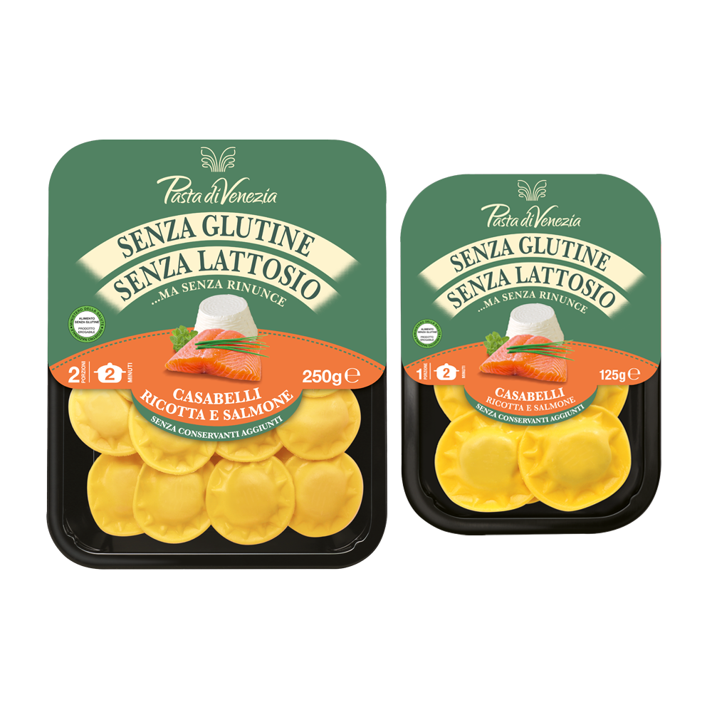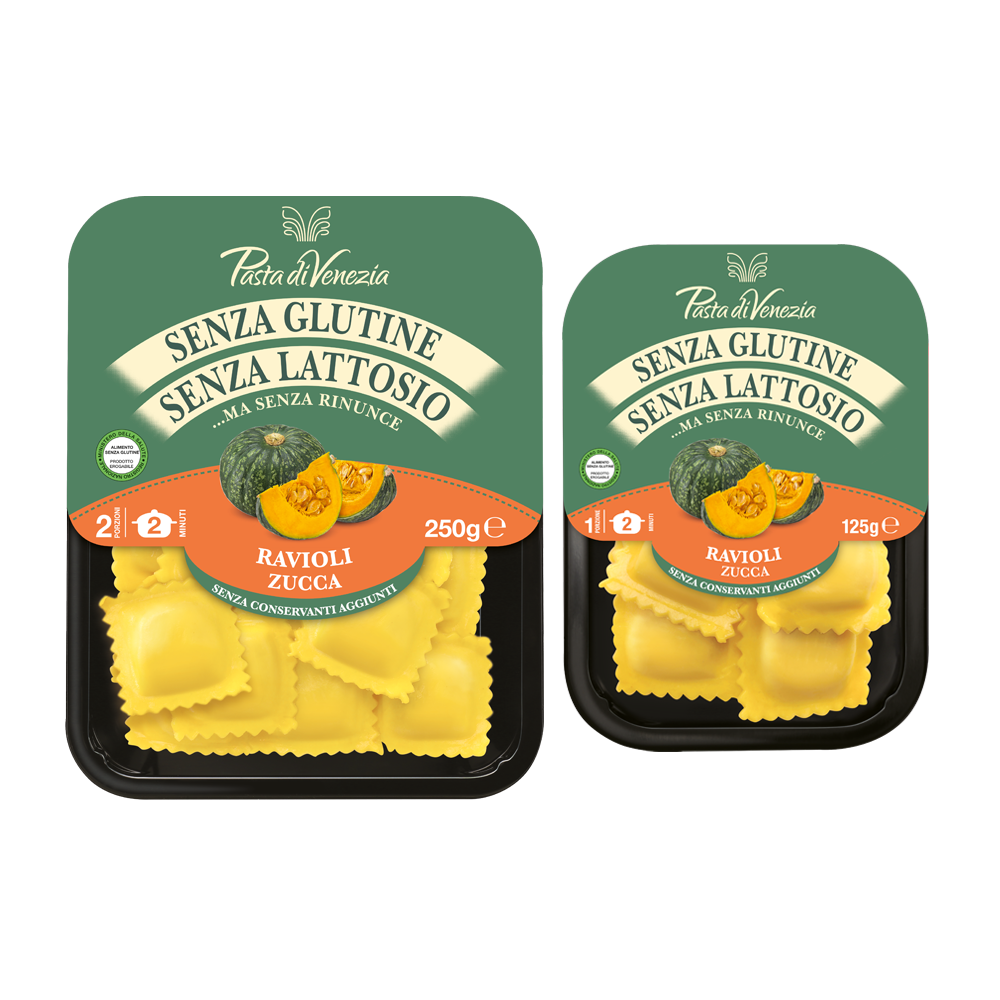 Ripieno 54%: ricotta senza lattosio 21,6%* (siero di latte senza lattosio, latte senza lattosio, crema di latte senza lattosio, sale, correttore di acidità: E270), spinaci 21,6%* (spinacio 95%, sale; correttore di acidità: sodio bicarbonato), semilavorato senza glutine (farina di mais, olio di semi di girasole, zucchero caramellizzato), formaggio Grana Padano DOP (latte, sale, caglio, conservante: lisozima da uovo), cipolla in polvere, sale, noce moscata, pepe nero, fibre vegetali.