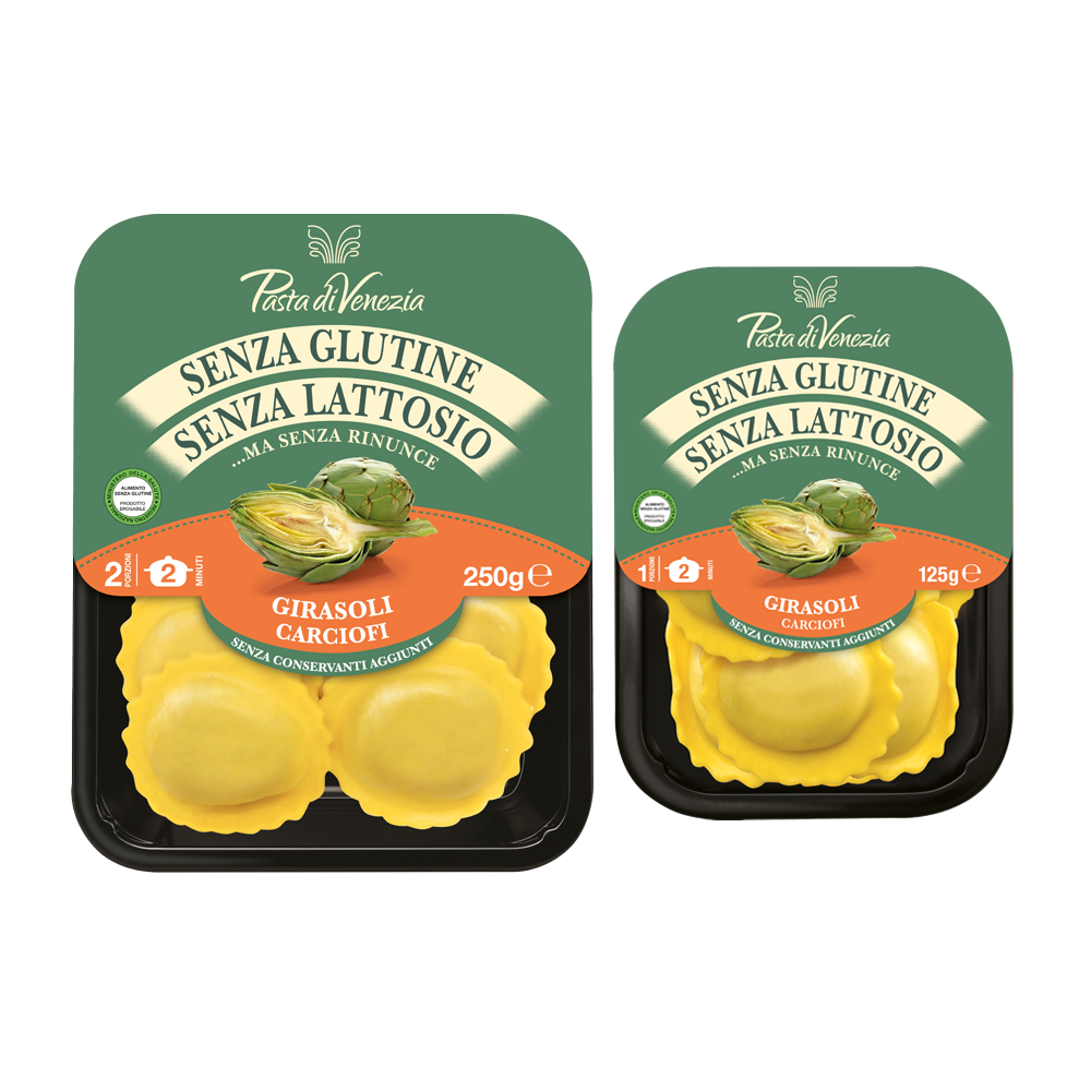 Girasoli Carciofi: un altro nostro punto di forza, un girasole ripieno per un piatto unico e bilanciato che subito vi coinvolgerà per la freschezza dei nostri carciofi; ineguagliabile tenuta di cottura per un raviolo cosi grande