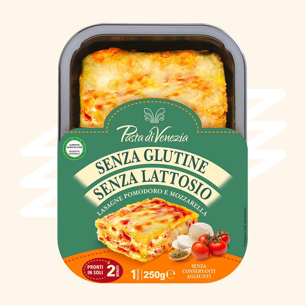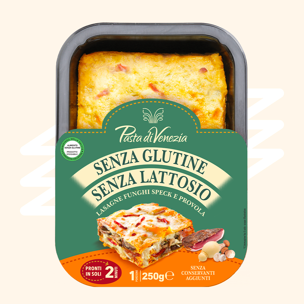 Una grande scelta di piatti pronti senza glutine, senza lattosio e senza conservanti aggiunti, tra cui lasagne al ragù, funghi speck e provola, ai carciofi, alla zucca e agli asparagi: come fatto in casa!